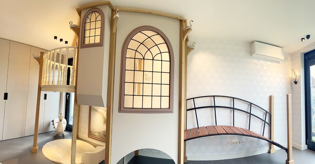 Een High Class kinderkamer welke tot in detail is uitgevoerd en waarbij het sprookje helemaal tot leven komt.