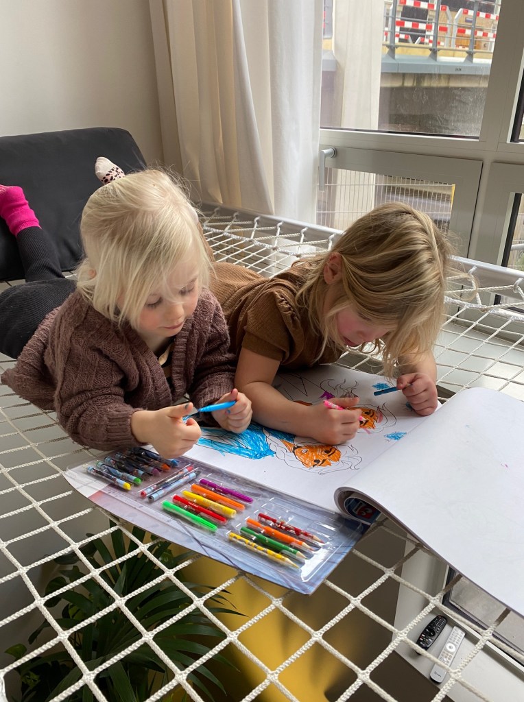 Een heerlijke lounge-plek voor deze kinderen is dit net in hun woning in Amsterdam.